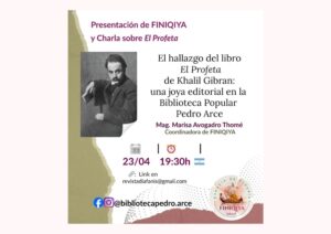 Presentación de FINIQIYA y charla: Hallazgo editorial de una edición de «El Profeta» en la Biblioteca Popular Pedro Arce