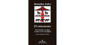 En El entusiasmo Remedios Zafra (Zuheros, Córdoba, 1973) nos ofrece una reflexión crítica sobre la vocación y el deseo creador de los trabajadores culturales –del artista, del académico, del comunicador…- bajo las condiciones creadas por la agenda neoliberal, deseo a menudo aplazado una y otra vez por la precariedad que se ha instalado en sus vidas junto con Internet y sus aparentes posibilidades. Se trata de un alegato acerca de la precariedad laboral y el trabajo creativo en la era digital con el que la autora apunta críticamente hacia el espejismo de una libertad que el discurso dominante afirma de manera recurrente, exigiéndonos convicción, entusiasmo e hipermotivación para lograr nuestros sueños, al mismo tiempo que las condiciones sociales estructurales lo ponen más difícil. En el marco neoliberal el trabajo creador muta en una afición y, como tal, cada vez se disocia más de su condición de proveedor de medios de vida esenciales para los creadores. Hay que trabajar vocacionalmente y de manera voluntarista, aceptando con una sonrisa en los labios la inestabilidad permanente, la incertidumbre y la falta de certeza sobre el futuro. Todos podemos crear y difundir nuestras ideas por Internet, pero son muchos los llamados y muy pocos los elegidos: cada vez es más difícil poder vivir de tu trabajo creador. Al final sobreviene el cansancio, la desilusión, la frustración de los proyectos vitales permanentemente aplazados mientras resolvemos la dura tarea de vivir cada día, buscando desesperadamente becas, ayudas y visibilidad, braceando de un contrato inestable a otro en medio del naufragio de la política, los derechos y la responsabilidad hacia los otros.