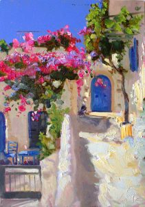 Salsa con frutas de la pasión Archivo - Archive Arte -Art Cuentos Número 5 - Marzo 2019 10 de marzo de 201910 de marzo de 2019 Xanlar Asadullayev – Greece morning – oil in canvas – Azerbaiján Marisa Avogadro Thomé – Escritora ítalo argentina marisaavogadro@uolsinectis.com.ar Salsa con frutas de la pasión Estaba en la casa donde vendían especias. Había llegado con la intención de comprar los ingredientes necesarios para acompañar la cena de esa noche. Inmediatamente el aroma de canela, vainillas, mezclados con jengibre y naranja, despertaban las ganas de preparar alguna comida especial. Como si estuviera en una calle dedicada al sabor, venían a mi mente los recuerdos de las comidas cariocas, los tintes del Oriente y la magia de otros tiempos. Quería sorprenderlo. Tenía la intención de crear un plato que al probarlo se sintiera como si los dedos se resbalaran por una fina seda. Que mezclara la suavidad de la crema en su punto, con una pizca de pimienta negra. Desde la ventana del negocio donde estaba, podía ver el mar azul intenso y los barcos pesqueros. Pensé en un plato de porcelana china blanco traslúcido en el que serví camarones frescos. Lentamente vacié sobre ellos una salsa de frutas de la pasión, amarilla intensa, dulce y algo agria como la espera. Se sintió la campanilla del timbre. Era la hora de la cena. Cena con salsa de frutas. La pasión, vino por cuenta nuestra. De su libro: Pasión a la Madrileña. Cuentos Gastronómicos A la carta. Gourmand Cookbook Awards al mejor libro electrónico de literatura gastronómica de la Argentina, España, 2015. Finalista en Yantai, China, 2016.