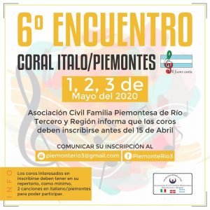 6º Encuentro Coral Ítalo – Piemontés en Río Tercero – Córdoba Archivo - Archive Diciembre 2019 Noticias - News 22 de diciembre de 201922 de diciembre de 2019 INFORMES: piemonterio3@gamil.com