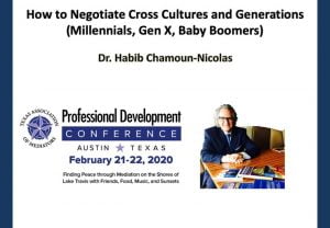 Conference «How to negotiate cross cultures and generations» by Dr Habib Chamoun-Nicolás Archivo - Archive Febrero 2020 Noticias - News 18 de febrero de 2020 Dr. Habib Chamoun-Nicolás e-mail: Hchamoun@me.com