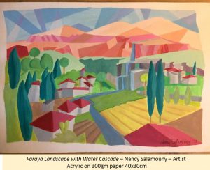 Nancy Salamouny: «I am inspired daily with the beauty of Lebanon and also by my students» Archivo - Archive Enero 2021 Entrevistas - Interviews 30 de diciembre de 202030 de diciembre de 2020 Mrs. Nancy Salamouny Nancy Salamouny is an American artist and art teacher, from Rhode Island living in Lebanon. She followed a graduate Program focused in Visual Design from Rhode Island School of Design. She is skilled in painting, murals, illustration, graphic design, photography, digital art, and has a demonstrated history of working in both fine arts and the design industry. Her acrylic, watercolor and mixed media works are full of colors movements and whimsical. Nancy’s house, studio, and the school she teaches at were destroyed by the blast that devastated the Beirut Port few months ago. Luckily she and her family are safe. How and when you discovered your passion to fine art? I was always interested in art since I was a very young child. I can remember being around 4 years old, and I would bring a small cigar box filled with coloring crayons and pencils and scissors with me whenever we went to visit our grandparents and I would sit for hours drawing, coloring, cutting papers and CREATING! This passion never left me. I have always found a way to be a creative individual and support my livelihood through my art, whether it was as a graphic designer, a muralist, a painter, a stage set designer, a teacher, and now as an owner of my own Paint and Wine venue in Beirut, called “Cheers to Painting” https://www.instagram.com/cheerstopainting/ How many hours a day do you work? I wake up with so many ideas and tasks each day, and each day can be different as far as how many hours I actually work. As an art teacher, I can work anywhere from 6 or 8 hours a day at the school, teaching arts, decorating hallways or preparing lessons. In my studio, I may work anywhere from 2 to 10 hours a day. Even if I spend a short time in my art studio, just cleaning the brushes and palettes, it is a task of an artist. So as I perform these tasks, I am in the role of an artist and my head is in the game! Some days it is strictly painting, while other days I am creating projects for my school art lessons and my Paint and Wine Nights. I try not to overdo it and get burn out. I leave time for relaxing, going for walks in nature, reading, and social media. You say that you are inspired by the beauty of Lebanon. What do you say now after the blast that hit Beirut’s Port three months ago and destroyed your house, studio and the school you teach at? The charm of the Lebanese culture has always inspired me; form the extraordinary landscapes to the bustling neighborhoods with old red tile roofed houses and vibrant green shutters. My art has captured these images with a playful and energetic essence. People always say my art looks so happy. The blast of August 4th, the most horrendous day of my life, shook our world, as it tore through our city and homes, leaving death and destruction at every turn. My home, art studio and school were all devastated. My neighborhood was unrecognizable. I am still in shock. The very streets and homes and trees that I had found so enchanting are now a pile of rubble and scare me to death! I have not been able to digest it all, or understand how the government could have let this happen to its people. I am unable to try to paint or express any scenario of the actual blast, or its destruction. It hurts too much to think about it, never mind try to capture these feelings or images on a canvas. I know many artists have painted images of the Beirut port blast, of the destroyed homes, the victims, but I cannot bring myself to paint these tragic scenes. I tried one pencil sketch, it but I could not finish it, as it just made me so angry and sad. I guess I am trying to cope this way. Will the blast’s memory affect the spirit of your works? It will indeed. I will treasure each small beautiful inspiration in Lebanon from this point on, knowing that in a mere few seconds it could be destroyed. I will take to heart the abundance of love and determination the Lebanese people have shown to me and to all the victims of the blast through these difficult times. I will search even harder to find joy in Lebanon to express in my art. My art expresses and revels in my joy, love, caring, and freedom. I will be more determined to seek and be grateful for all my blessings and pour them into my art. How your students inspire you? My students inspire me daily, to be a good teacher, a patient listener, a concerned adult. I am sharing my life experiences with my students through my art. They in turn share their daily hopes, quests and disappointments with me and share this in their art. They keep me active, always looking to answer their needs, keeps me on my toes and my senses awake! They remind me of my own youth, and make me feel younger some days, while on other days they tire me out so much I feel so old!!! Is there a piece of your artwork you would like to be remembered for? Several years back, I painted a series of paintings featuring my daughters to represent each month of the year for a calendar. For instance, for the month of February, Valentines Day, I painted my daughter standing in a pile of those heart shaped candies that say “Love me” and “Hug me” and so on. For the month of April, I painted one daughter as Alice in Wonderland, signifying April Fool’s Day. I also did one for the summer months with a guitar and hippie vibe. These paintings took lots time and creativity, to capture the true likenesses of my daughters and to put them into a creative scenario to capture the month and season. I loved painting them and I love looking at them, as I still have them all! I have also recently painted a series of what I call “Windowscapes”. They are still life paintings which are composed of actual plants, books, stools I have in my studio, yet I paint imaginary scenes outside the windows, letting m