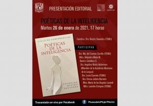 Poéticas de la inteligencia: presentación editorial del Museo de la Mujer de México Archivo - Archive Enero 2021 Noticias - News 23 de enero de 2021 El Museo de la Mujer invita a la presentación editorial de Poéticas de la inteligencia, coordinado por la Dra. Beatriz Saavedra (FEMU). La cita es el martes 26 de enero a las 17 horas. Las organizadoras expresaron que: “la obra tiene como objetivo valorar y revaluar la calidad literaria de muchas escritoras que han trascendido a la historia como mujeres transgresoras, sin que su valor artístico haya sido estimado, apreciado o reconocido. Hace un análisis de cada una de ellas, en donde se analiza su vida, su obra y la sociedad a la que se enfrentó en la época que vivió, haciendo una crítica literaria de su obra”. Para interactuar vía Zoom, es necesario registrarse previamente al correo electrónico recepcionmuseomujer@gmail.com; indicando nombre del evento, nombre completo y teléfono de contacto. Se puede sintonizar la transmisión simultánea por Facebook.