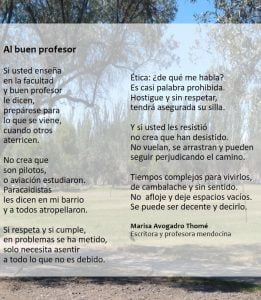 Al buen profesor Archivo - Archive Febrero 2021 Noticias - News 11 de febrero de 2021 Marisa Avogadro Thomé – Escritora, periodista y profesora argentina marisaavogadro@uolsinectis.com.ar