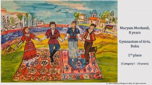 En la categoría de niños hasta los 10 años, Maryam Movlamli, de 8 años, obtuvo el primer lugar. Daniz Quliyeva, de 10 años, está en segundo lugar y Zahra Abdurahmanli, de 10, en tercer lugar. En la categoría de niños de 11 a 16 años, Madina Hamzatova, de 11 años, ocupa el primer lugar, seguida de Gulhanam Amirli, de 16 años, en segundo lugar, y el tercer lugar es para Yulker Alieva, de 16. Más de 40 niños han sido premiados. por el jurado por sus trabajos con reconocimientos especiales.