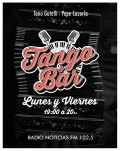 Tango&Bar: el nuevo programa radial de Pepe Cazorla y el Tano Gutelli por la FM 102.5 Archivo - Archive Mayo 2021 Noticias - News 12 de mayo de 202112 de mayo de 2021 Tango&Bar es el nuevo programa radial de los mendocinos Pepe Cazorla y Tano Gutelli que se emite los lunes y viernes de 19 hr a 20hr por Radio Noticias FM 102.5, de Mendoza. Con el estilo que los caracteriza, buscando nuevas narrativas en este escenario de emergencia internacional, vuelven a reunir a los amantes de la música ciudadana argentina, en una propuesta que amalgama el vasto conocimiento que tienen del tema, sus pasiones, sus haceres. Para todos los que los conocemos desde el Tango&Bar que era presencial antes de la pandemia, su propuesta por video semanal; llegan con su impronta para acompañar a los mendocinos para comenzar y terminar la semana, con una cobertura que alcanza tanto al Gran Mendoza, como al Valle de Uco, Zona Este, Luján y Maipú. Tango&Bar, lunes y viernes, para disfrutar de un corte, una quebrada, nostalgias y algo más… Marisa Avogadro Thomè, periodista.