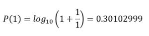 Si tenemos un conjunto bastante grande de números como: los precios de todos los productos de una tienda, la población de cada municipio de México, el número de veces que se ha reproducido cada video de youtube, la longitud de cada río del mundo, por mencionar algunos ejemplos, la probabilidad de que un número de estos conjuntos empiece por el número 1 es alrededor del 30.130%.  Este resultado es establecido por la Ley de Benford o también llamada ley de los números anómalos, la cual nos sirve para calcular la probabilidad de que la primera cifra de un conjunto grande de números asociado  aun mismo fenómeno empiece por un dígito n específico distinto de cero.  Esta probabilidad se calcula por: