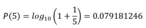 Que en porcentaje es aproximadamente 30.103%. Así la probabilidad de que el precio de un producto empiece digamos por 5 es: