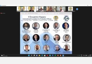 Finalizó el II Encuentro Hispano de IFPO Archivo - Archive Mayo 2022 Noticias - News 13 de mayo de 202213 de mayo de 2022 Hoy finalizó el II Encuentro Hispano de IFPO ( International Foundation for Protection Officers – Fundación Internacional para Oficiales de Protección) en modalidad virtual, realizado del 9 al 13 de mayo, con la presencia de reconocidos expositores de Argentina, Bolivia, Brasil, Chile, Colombia, Costa Rica, Ecuador, España, Estados Unidos, México, Paraguay, Perú, República Dominicana, Uruguay y Venezuela. En 5 jornadas intensas referidas a temas de seguridad pública, privada y ciudadana, abordados desde diferentes perspectivas; se realizó un panóptico del tema conductor del encuentro, que fue seguido en modalidad en línea por gran cantidad de asistentes. Estuvieron como disertantes los profesionales: Kevin Palacios, César Tapia, Michael Gips, Salvador Dahan, Carlos Seoane, José Amarilla, Fernando Vaccoti, Pedro Oré, Alberto Ray, Guillermo Holzmann, Humberto Copa, Ignacio Beral, Julio González, Edgardo Frigo y Juan Carlos Garnier. Como moderadores participaron los profesionales: Alfredo Yuncoza (Venezuela), Edison Cadena (Ecuador), Héctor Robles (México), Alejandro Lartigau (Argentina) y Riomer Castro (Venezuela). Las ponencias pueden consultarse en el siguiente enlace: https://ifpo.es/2022/05/06/2do-encuentro-ifpo-hispanoamerica/ FUENTE: https://ifpo.es/