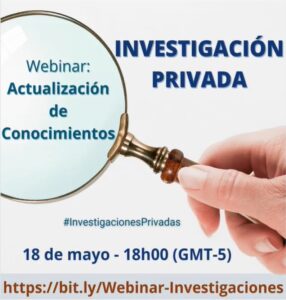 Investigación privada: nuevo seminario en línea de IFPO Archivo - Archive Mayo 2022 Noticias - News 14 de mayo de 202214 de mayo de 2022 La Fundación Internacional para Oficiales de Protección -IFPO ( International Foundation for Protection Officers) realizará el 18 de mayo un seminario de actualización en conocimientos para profesionales de protección, 9no de la serie CPO, en modalidad virtual, a las 18h00 Hora de Panamá, Perú, Colombia, Ecuador (GMT-5), con una duración de 2 horas. Para registrarse deben ingresar al enlace de registro: Los temas a tratar son: *Investigaciones: Conceptos y buenas prácticas *Procedimientos en escena del crimen *Fundamentos de vigilancia *Técnicas de entrevista El seminario en línea es sin costos para miembros IFPO e invitados por miembros IFPO. El precio de la actividad para el resto del público es de $ 50 USD y el certificado de participación tiene un costo de $ 20 USD y Las personas sin membresía vigente IFPO, puedes obtener una en http://ifpo.es/membresia-individual/; o contactar a un miembro y solicitarle que le invite para obtener acceso gratuito a esta actividad. Preguntas sobre su registro a la Sra Laura Coello, Cel. +593998104457, e-mail: admin@ifpo.es FUENTE: https://ifpo.es/