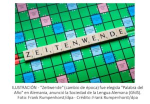 Eligen «Zeitenwende» (cambio de época) como palabra del año en Alemania Archivo - Archive Diciembre 2022 Noticias - News 10 de diciembre de 2022 Wiesbaden (Alemania), 9 dic (dpa) – «Zeitenwende» (cambio de época) fue elegida «Palabra del Año» en Alemania, anunció hoy la Sociedad de la Lengua Alemana (GfdS). El término está relacionado con la guerra de agresión rusa contra Ucrania y fue recogido y acuñado, entre otros, por el canciller alemán, Olaf Scholz. «La invasión rusa de Ucrania marca un cambio de época. Pone en peligro todo nuestro orden de posguerra», declaró el canciller a finales de febrero. La GfdS selecciona palabras que han tenido un impacto lingüístico especial en la vida política, económica y social de Alemania durante un año, en base a millares de propuestas enviadas por medios de comunicación y ciudadanos. Este año recibió más de 2.000 sugerencias. Según la Sociedad de la Lengua Alemana, el factor decisivo para figurar en la lista de «palabras del año» no es la frecuencia, sino la importancia y la popularidad de las mismas. El año pasado, la palabra elegida fue «Wellenbrecher» («rompeolas»), que se refiere literalmente al dique avanzado en el mar que protege las costas, pero que en 2021 se utilizó también para hacer referencia a las medidas aplicadas para proteger a la población de las olas de la pandemia de coronavirus. La «Palabra del Año» se eligió por primera vez en 1971 y se ha elegido todos los años desde 1977. La Sociedad de la Lengua Alemana es una asociación políticamente independiente para el cuidado y la investigación de la lengua alemana, tiene sede en Wiesbaden y está financiada por el Gobierno federal y la Conferencia de Ministros de Educación y Asuntos Culturales de los estados federados. Fundada en 1947, esta asociación sin ánimo de lucro ofrece también asesoramiento lingüístico sobre gramática, ortografía y puntuación, entre otras cosas.