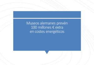 Museos alemanes prevén 100 millones € extra en costes energéticos Archivo - Archive Diciembre 2022 Noticias - News 5 de diciembre de 20225 de diciembre de 2022 Berlín, 30 nov (dpa) – La Asociación Alemana de Museos situó hoy en 100 millones de euros (103,5 millones de dólares) el coste adicional que tendrán que pagar los museos en 2023 por los elevados precios energéticos. «Tras las pérdidas de ingresos relacionadas con la pandemia, muchos museos no podrán cubrir estos costes adicionales con sus presupuestos», señaló la asociación en un comunicado. Una portavoz de la asociación agregó que los museos de mayor tamaño podrían tener que hacer frente a gastos adicionales de hasta 200.000 euros al año. La entidad apuntó que los museos trabajan activamente en la aplicación del objetivo fijado por el Gobierno federal de ahorrar un 20 por ciento de energía. En octubre, la secretaria de Estado de Cultura, Claudia Roth, anunció una ayuda a las instituciones culturales para paliar los elevados costes energéticos. Desde el punto de vista de la asociación, se trata de un apoyo importante. Sin embargo, el dinero aún no ha sido liberado, comentó la portavoz y solicitó al Gobierno federal que facilite el acceso a la ayuda de forma sencilla y sin burocracia.