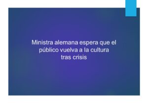 Ministra alemana espera que el público vuelva a la cultura tras crisis