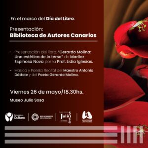 Marilez Espinosa Novo presenta su libro: «Gerardo Molina: Una estética de lo terso» Archivo - Archive Mayo 2023 Noticias - News 19 de mayo de 202319 de mayo de 2023 El viernes 26 de mayo a las 18:30 hs de Uruguay, en el Museo Julio Sosa, la Biblioteca de Autores Canarios presenta el libro «Gerardo Molina: Una estètica de lo terso», de la autora Marilez Espinosa Nova y dicha presentación estará a cargo de la profesora Lidia Iglesias. Las actividades estàn previstas en el marco del Dìa Nacional del Llibro en ese país, y acomparán en el evento, un recital de música y poesía a cargo del Maestro Antonio Dáttole y el Poeta Gerardo Molina. Sobre el mencionado libro, María Perdomo expresa «Entrar en una catedral, observar los minuciosos detalles de su arquitectura y experimentar esa delicada minuciosidad y contundencia… «Asì vivenciè la lectura de este exquisito ensayo al pasear la mirada dentro de sus naves. «Un abordaje de la poesía de Gerardo Molina que hace foco en la «tersura». Un estudio tan provocativo como balsámico. transitamos tiempos de áspera mediocridad casi cotideanamente. El análisis que realiza la profesora Marilez Espinosa sobre la obra del poeta uruguayo nos reconcilia con el bello Arte de decir. Y asì en la palabra del poeta como en los términos de la exégeta sucede la maravilla de la expresión exacta». »
