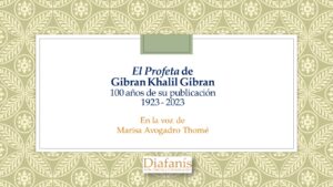 «El Profeta» de Khalil Gibran en la voz de Marisa Avogadro Thomé a 100 años de publicado Agosto 2023 Archivo - Archive Ciencias y Comunicación - Science and Communication 22 de agosto de 2023 Mag. Marisa Avogadro Thomé – Escritora argentina Socia correspondiente por la Argentina en la Academia Libanesa – Brasileña de Letras, Artes y Ciencias en Rio de Janeiro, Brasil me.avogadro@gmail.com.ar El libro El Profeta de Gibran Khalil Gibran fue publicado en el año 1923 en los Estados Unidos y este año 2023, se recuerda el centenario de su publicación. Por tal motivo, con el auspicio de la revista internacional Diafanís. Arte, Ciencia y Comunicación, desde Mendoza, Argentina, decidí realizar este video, leyendo el libro, para que las personas puedan acceder a él de forma libre. El 6 de enero de 1883 nació Gibran Khalil Gibran en Bsharri, en una ciudad del Norte del Líbano. Autor libanés reconocido internacionalmente, fue un poeta, ensayista, pintor y novelista. Falleció el 10 de abril de 1931 en Nueva York, Estados Unidos, a la edad de 48 años. Su obra El Profeta, escrita originalmente en idioma inglés, ha sido traducida a más de 112 idiomas y fue por primera vez en Estados Unidos donde se dio su lectura en el 1923 y es uno de los libros más vendidos a nivel mundial. El libro nos refiere las historias de Almustafá y sus reflexiones a los habitantes de Orphalese, de temas tales como: el amor, la familia, las leyes, entre otros; en un abordaje pleno de espiritualidad. José Elias Guraieb realizó la primera traducción de este libro al español en 1933 y además tradujo otros 7 libros de Gibran. Él y Khalil Gibran estaban relacionados a través de su trabajo literario. Un tío de Guraieb, llamado Amín Guraieb residía en Nueva York, donde también lo hacía Gibran, y era el dueño del diario Al – Mohajer (El Emigrado). En dicho periódico, Gibrán comenzó a publicar sus obras desde 1905 y José, a través de su tío, le solicitó traducir sus libros. En este el año del centenario de la publicación de El Profeta, se realizó en sede de las Naciones Unidas en Nueva York, Estados Unidos, la exhibición Khalil Gibran retorna a Nueva York 100 años después, en el mes de abril, entre otros eventos conmemorativos.