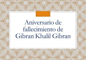 10 de abril: Aniversario de fallecimiento de Gibran Khalil Gibran por Marisa Avogadro Thomé Abril 2024 Archivo - Archive Noticias - News 10 de abril de 2024 Mag. Marisa Avogadro Thomé, periodista y escritora argentina Socia Correspondiente por Argentina de la Academia Líbano – Brasileña de Letras, Artes y Ciencias de Río de Janeiro, Brasil me.avogadro@gmail.com El 6 de enero de 1883 nació Gibran Khalil Gibran en Bsharri, en una ciudad al Norte del Líbano. Autor libanés reconocido internacionalmente, fue un poeta, ensayista, pintor y novelista. Falleció el 10 de abril de 1931 en Nueva York, Estados Unidos, a la edad de 48 años. Desde la Galería Virtual de Revista Diafanís, pueden conocerse algunas de sus pinturas, que por gentileza del Gibran National Committee (GNC) del Líbano, se exhibieron en diciembre de 2018 y enero de 2019: http://www.revistadiafanis.com.ar/category/diciembre-2018/ y en http://www.revistadiafanis.com.ar/category/enero-2019/ Asimismo, Diafanís tiene el honor de contar con una columna permanente de información del Gibran National Committee. Sus obras han sido traducidas a más de veinte idiomas. Y su libro El Profeta, a más de 112 idiomas. De su vasta producción recordamos algunos títulos: Espíritus rebeldes (1903) La música (1905) Lágrimas y sonrisas (1914) La procesión (1918) El loco (1918) Los cortejos (1919) El precursor (1920) La tempestad (Entre noche y día) (1920) Maravillas y curiosidades (1923) El Profeta (1923) Lázaro y su amada (1925) Arena y espuma (1926) Jesús, el Hijo del hombre (1928) Los dioses de la tierra (1931) El vagabundo (1932) Entre noche y día El jardín del Profeta (1933) obra póstuma Museo Gibran El GNC tiene el Museo de Gibran Khalil Gibran, cuyo detalles pueden conocerse visitando: http://www.gibrankhalilgibran.org/Museum/