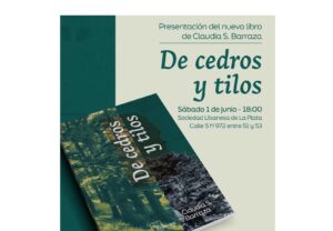 Claudia Barraza presenta su nuevo libro «De cedros y tilos» en La Plata Archivo - Archive Mayo 2024 Noticias - News 16 de mayo de 2024 La escritora argentina Claudia Barraza presentará en la ciudad de La Plata Buenos Aires, su segundo libro editado por Ediciones Hespérides. De cedros y tilos es su título y el evento se realizará el 1 de junio a las 18 hs en calle 5 N°972, entre 51 y 53, sede de la Sociedad Libanesa de dicha ciudad. “Me encuentro en algo muy parecido a un sueño. Tal vez un vuelo. Quizá un deseo tan fuerte como este viento que me impulsa mirar todo desde muy arriba…” (El vuelo, pag 35), expresó la autora.