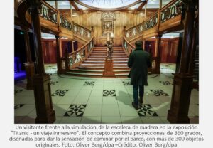 Inauguran exposición inmersiva sobre el «Titanic» en Alemania Archivo - Archive Febrero 2025 Noticias - News 6 de febrero de 2025 Colonia (Alemania), 6 feb (dpa) – Una exposición inmersiva que se inaugura mañana en la ciudad alemana de Colonia permite situarse en uno de los pasillos del «Titanic» y ver cómo el agua que penetra sube cada vez más y luego se apagan las luces, o bien observar desde un bote salvavidas cómo el poderoso transatlántico se parte en dos y se hunde. La exposición «Titanic – Un viaje inmersivo», que se presenta por primera vez en países de habla alemana, reconstruye en proyecciones de 360 grados estancias y vistas del que probablemente sea el barco más famoso de la historia. El «Titanic» chocó con un iceberg en su viaje inaugural a Nueva York en 1912 y se hundió.En el accidente murieron casi 1.500 personas. La exposición reúne también unos 300 objetos originales del «Titanic» y otros barcos. Un gráfico muestra los lugares de origen de todos los pasajeros, entre ellos uno que está enterrado en un cementerio justo enfrente del sitio de la exposición: el alemán Alfred Nourney (1892-1972). Nourney, que se registró a bordo del «Titanic» como el barón Alfred von Drachstedt, describió la colisión con el iceberg en una entrevista radiofónica en 1962: «No hubo ningún estruendo ni nada parecido, no se cayó ningún cristal». El hombre explicó que solo notó un ligero movimiento. Entonces salió, miró a su alrededor y poco después logró ubicarse en uno de los botes salvavidas. «La popa, que se veía en el horizonte, las enormes hélices en el aire, se quedaron quietas un momento, y luego tronó y rrrrum… se fue, precipitándose a las profundidades», relató Nourney, agregando que percibió los gritos de la gente que se ahogaba como el sonido de una sola sirena. «Eso fue probablemente lo peor de todo el hundimiento, esos terribles gritos de la gente». La exposición será mostrada a partir del 17 de abril en Hamburgo y más adelante en Múnich.