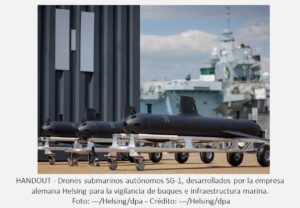 Empresa alemana crea dron submarino para vigilar buques e infraestructura Archivo - Archive Mayo 2025 Noticias - News 13 de mayo de 2025 Berlín, 13 may (dpa) – La empresa de defensa alemana Helsing, especializada en tecnologías de inteligencia artificial (IA), desarrolló un dron submarino para la protección de buques e infraestructuras críticas, según anunció hoy. El planeador submarino autónomo SG-1 Fathom puede fabricarse en serie y es capaz de formar constelaciones de sensores de vigilancia a gran escala, de acuerdo con la información. Los drones podrían patrullar hasta tres meses seguidos en busca de amenazas submarinas. La empresa también presentó la plataforma de software Lura vinculada al sistema de drones para la vigilancia submarina permanente. Basada en una gran red neuronal acústica, Lura es capaz de clasificar y localizar firmas acústicas -los sonidos generados por buques y submarinos- «con una sensibilidad y precisión sin precedentes», prometió Helsing. «El modelo Lura puede reconocer firmas acústicas 10 veces más silenciosamente que otros modelos de IA, incluso distinguir entre determinados buques de la misma clase, y esto hasta 40 veces más rápido que los operadores humanos», anunció la empresa. Helsing, con sede en Múnich, ya fabrica el dron kamikaze HX-2, utilizado por Ucrania. Helsing describe Lura y SG-1 Fathom como un «nuevo enfoque del combate submarino», que según la empresa, nunca fue tan complejo y amenazador. Añadió que las capacidades convencionales no bastan para hacer frente a la magnitud del desafío. Los países occidentales llevan tiempo buscando formas de proteger los oleoductos y cables de datos del fondo marino de sabotajes, ataques e intentos de espionaje. Bloc de notas