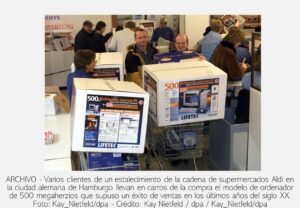 Museo alemán de Historia expone «ordenador popular» de supermercados Aldi Archivo - Archive Noticias - News Setiembre 2025 23 de septiembre de 2025 Bonn (Alemania), 23 sep (dpa) – La cadena de supermercados alemana Aldi puso a la venta en 1995 ordenadores baratos por los que muchos clientes hacían cola durante horas y, ahora, 30 años más tarde, uno de ellos va a ser expuesto en uno de los museos más visitados de Alemania. La Casa de la Historia de la República Federal de Alemania en Bonn, en el oeste del país, exhibirá un ordenador de los llamados de torre, con unidades de disquete y de CD-ROM, que fue comercializado por Aldi en 1997 y que el museo recibió de un donante de Colonia en 2009. Este ordenador destaca en la primera parte de una nueva exposición permanente que conmemora un hito en la historia tecnológica alemana. Lanzado al mercado en noviembre de 1995 La cadena de supermercados presentó por primera vez un ordenador compatible con IBM en noviembre de 1995. Inicialmente, su éxito fue limitado. El ‘hardware’ del ordenador era comparativamente potente. Sin embargo, venía con el entonces ya obsoleto sistema operativo Windows 3.11. El nuevo Windows 95, que Bill Gates, cofundador de Microsoft, presentó a bombo y platillo tres meses antes, habría sido más atractivo. Los PC de Aldi tuvieron su mayor éxito dos años después, cuando lanzó un ordenador que incorporaba un chip Intel Pentium 166. El número 166 representaba la velocidad en megaherzios a la que funcionaba el procesador. Este PC y un monitor de 15 pulgadas costaban poco menos de 1.800 marcos alemanes (unos 920 euros, 1.085 dólares) en conjunto. Pelea con una pistola de fogueo Las disputas por los productos en oferta a veces se descontrolaban. En Constanza, en el sur de Alemania, en noviembre de 1997, dos hombres se pelearon a puñetazos por el último PC del establecimiento. Allí, un cliente de 36 años sufrió una herida en la cabeza. Sin embargo, el hombre no se rindió y, blandiendo una pistola de fogueo, obligó a que le entregaran el PC. No obstante, no se le permitió llevarse el ordenador a casa porque la policía, que había sido llamada durante el altercado, lo detuvo al ir a pagar a la caja. No obstante, la búsqueda de productos baratos fue, en general, menos violenta. En los años siguientes, Aldi y su empresa de reparto a domicilio Medion vendieron regularmente decenas de miles de ordenadores. Y competidores como Lidl, Norma y otras tiendas de descuento también ofrecían ordenadores personales en sus catálogos, además de verduras, papel higiénico o leche embotellada. Minoristas de informática a la defensiva Las víctimas de esta ofensiva de las tiendas de descuento fueron los minoristas de informática tradicionales, como Schadt Computertechnik. Durante un tiempo, esta empresa con sede en Stuttgart, en el suroeste de Alemania, intentó contrarrestar las ofertas como las de Aldi con sus propias campañas creativas, ofreciendo en ocasiones ositos de goma, crema de ducha y chocolate a precios significativamente inferiores al precio de venta al público. La campaña publicitaria decía: «Compras ordenadores en un comercio especializado, no en una frutería». Sin embargo, las tiendas de descuento resistieron. En 1998, Schadt inició un procedimiento de quiebra. Una especie de «ordenador popular» La Casa de la Historia de Bonn exhibe ahora el ordenador de Aldi en su colección de historia contemporánea, que documenta los cambios significativos en la vida cotidiana con objetos originales. «Gracias a su precio relativamente bajo y sus características competitivas, el ordenador de Aldi se convirtió en una especie de ‘ordenador popular’, ya que permitió a casi todas las clases sociales acceder a la era de la información e internet», declaró una portavoz del museo.