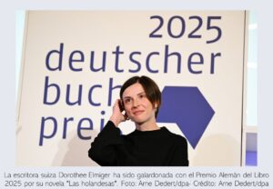 Galardonan a Dorothee Elmiger por un viaje al corazón de las tinieblas Archivo - Archive Noticias - News Octubre 2025 16 de octubre de 202516 de octubre de 2025 Fráncfort (Alemania), 14 oct. (dpa) – La escritora suiza Dorothee Elmiger ganó el Premio Alemán del Libro 2025 por su novela «Die Holländerinnen» («Las holandesas»), que el jurado elogió como un «fascinante viaje al corazón de las tinieblas». Elmiger, nacida en 1985 y residente en Nueva York, figuraba entre las favoritas al galardón, dotado de 25.000 euros (28.900 dólares), uno de los más prestigiosos del mundo literario de habla alemana. El premio se anunció en la noche del lunes, antes de la inauguración hoy de la Feria del Libro de Fráncfort. La novela narra el viaje de un grupo de teatro a la selva sudamericana para averiguar el paradero de dos mochileras holandesas desaparecidas años antes. Pero el proyecto pronto se descontrola: el grupo parece estar a punto de ser devorado por la selva y comparte entre sí inquietantes historias. Según el jurado, la novela de Elmiger induce al lector al miedo, mostrando a personas que caen en su «opuesto más oscuro», mientras el lenguaje y el narrador se mantienen en el estilo indirecto. Elmiger, que estuvo a punto de abandonar el proyecto varias veces a lo largo de tres o cuatro años, dijo que quería explorar distintas formas de violencia y dominación. «Pensé que tenía que despedirme de la escritura», declaró al periódico suizo «Wochenzeitung». «De repente sentí como si me hubieran quitado el freno de mano». La novela, publicada por Hanser Verlag, se ha agotado en muchas tiendas en medio de una gran demanda, y los libreros informan de plazos de entrega de varias semanas. El jurado del Premio Alemán del Libro examinó 229 novelas en lengua alemana publicadas entre octubre de 2024 y mediados de septiembre de 2025 antes de reducir la lista a seis finalistas. El año pasado, el galardón fue para la alemana Martina Hefter por su novela «Hey, buenos días. ¿Cómo estás?» (en español en Maeva Ediciones).