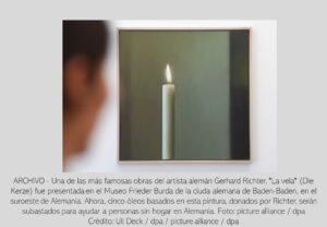 Pintor alemán Gerhard Richter subasta grabados para fines benéficos Archivo - Archive Diciembre 2025 Noticias - News 23 de diciembre de 2025 Colonia (Alemania), 23 dic. (dpa) – El pintor alemán Gerhard Richter, de 93 años, donará poco antes de Navidad cinco grabados, basados en uno de sus óleos más famosos -«La vela», de 1982-, que se subastarán con fines benéficos para ayudar a personas sin hogar. Según explicó Dirk Kästel, portavoz de la asociación de ayuda a personas sin hogar «Kunst hilft geben» (El arte ayuda a dar), el famoso artista alemán ha cedido cinco grabados firmados. En 2023, un grabado algo más pequeño de «La vela» de Richter se vendió por 99.000 euros (117.000 dólares). El dinero recaudado se destinará a comida, ropa y sacos de dormir, y también contribuirá a la construcción de un nuevo albergue para personas sin hogar donde vivirán 35 mujeres y ocho jóvenes. «Con la donación artística de Richter podemos ayudar a muchos sin techo durante el invierno. Es para nosotros un gran regalo de Navidad», añadió el portavoz de la asociación.