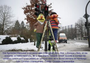 A partir de ahora, Ernie y Bert (Epi y Blas, o Enrique y Beto), dos de los personajes más icónicos de la longeva serie infantil, regulan ahora el tráfico como muñecos de semáforo cerca de las dos sedes de la cadena Norddeutscher Rundfunk (NDR).