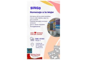 Godoy Cruz [Mendoza], 21 feb. [Prensa Biblioteca]. – La Biblioteca Popular Celestino Pedro Arce ha organizado el Bingo homenaje a la Mujer, que se llevará a cabo el sábado 7 de marzo a las 19:30, en la Cancha de la Unión Vecinal del Barrio Covimet de Godoy Cruz.