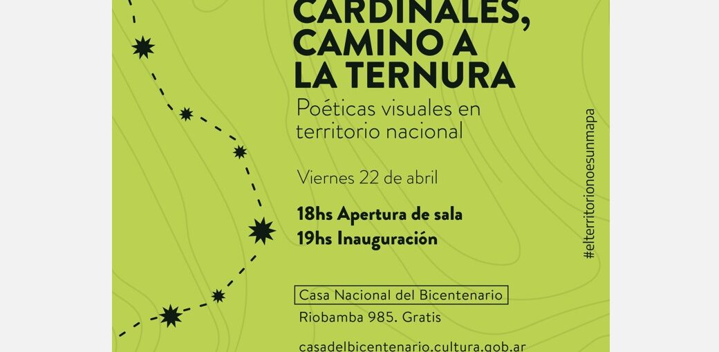 Cardinales, camino a la ternura en la Casa del Bicentenario en Buenos Aires Abril 2022 Archivo - Archive Noticias - News 21 de abril de 2022 El próximo viernes 22 de abril a las 18, se inaugura Cardinales, camino a la ternura. Poéticas visuales en territorio nacional, exhibición a cargo de artistas de Salta y Jujuy. Se trata de la primera muestra del ciclo de exposiciones colectivas El territorio no es un mapa, con la coordinación