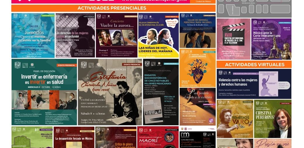 Museo de la Mujer de México: cartelera de actividades de octubre Archivo - Archive Noticias - News Octubre 2022 9 de octubre de 2022 El Museo de la Mujer de México dio a conocer la cartelera de actividades durante el mes de octubre de 2022. Desde el siguiente enlace se pueden consultar todos los eventos: https://museodelamujer.org.mx/virtual/actividades/ Asimismo, y con motivo de estar disponible el Boletín no. 234 de la Federación Mexicana de Universitarias, brindaron el