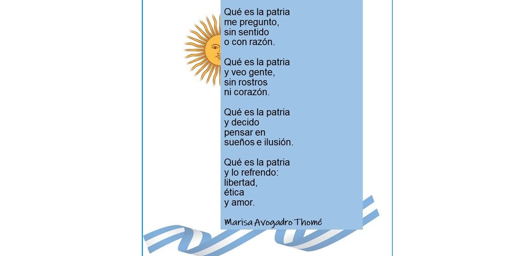 ¿Qué es la Patria? – Poesía en el Día de la Patria en la Argentina Archivo - Archive Junio 2021 Noticias - News 25 de mayo de 202125 de mayo de 2023 Mag. Marisa Avogadro Thomé - Mendoza - Argentina me.avogadro@gmail.com