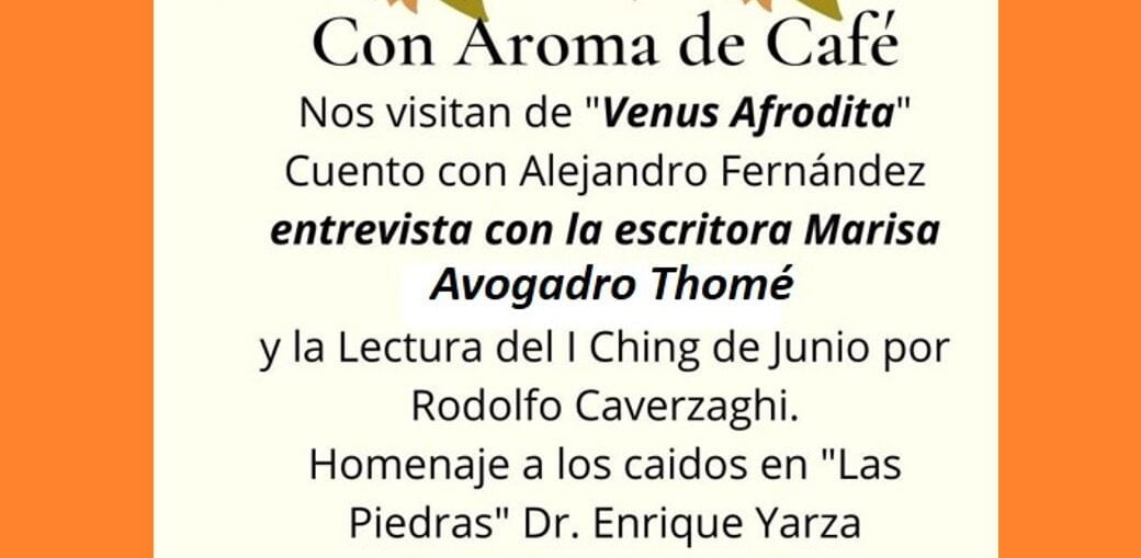 Graciela Leguizamón y su programa «Con Aroma de Café» el 2 de junio desde Uruguay Archivo - Archive Junio 2021 Noticias - News 1 de junio de 2021 Como todos los miércoles de 18 a 19 hr, Graciela Leguizamón creadora y conductora del programa "Con aroma de café", comparte las tardes con los oyentes de la FM 88.7 Ciudadela de Uruguay. Mañana 2 de junio estarán junto a ella: Venus Afrodita, Alejandro Fernández con sus cuentos; el Dr. Enrique