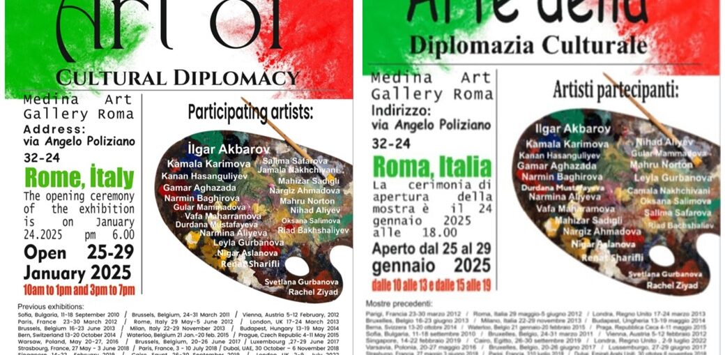 The exhibition «The Art of Cultural Diplomacy – Art for Peace» with Azerbaijani artists will be held in Rome – English and Spanish versions Archivo - Archive Enero 2025 Noticias - News 6 de enero de 20257 de enero de 2025 Azerbaiján, Jan. 5 [Dirchelish (Revival) Youth Social-Psychological Rehabilitation Center].- The director of the Dirchelish (Revival) Youth Socio-Psychological Rehabilitation Center, Islam Bakhshaliyev, Ambassador of Peace, organizes a collective exhibition of young Azerbaijani artists on the eve of the anniversary of the Municipality of Rome, Italy, which will take place from January