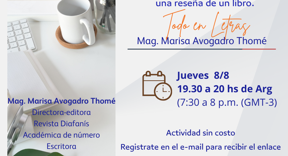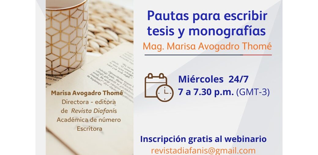 Pautas para escribir tesis y monografías: actividad virtual el 24 de julio Archivo - Archive Noticias - News Número 21 - Julio 2024 20 de julio de 2024 Inscripción gratuita enviando un e-mail a: revistadiafanis@gmail.com
