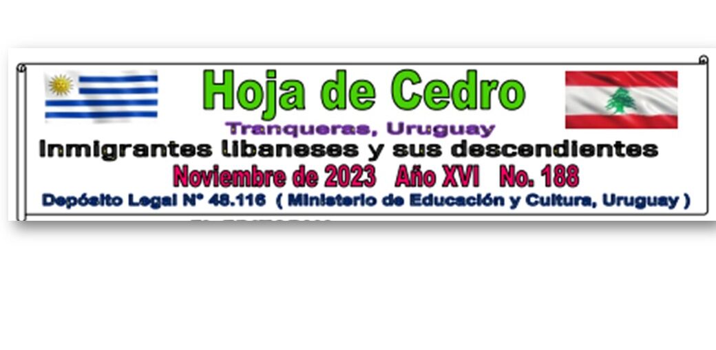 «Hoja de Cedro» de enero disponible para descargar de forma libre en Diafanís Archivo - Archive Enero 2024 Noticias - News 2 de enero de 2024 HOJA DE CEDRO. Enero 2024 Hoja de Cedro, la conocida publicación artesanal sobre el Líbano, inmigrantes libaneses y descendientes, que publica desde Tranqueras, Uruguay, su creador y productor José María Almada Sad, publicó su ejemplar del mes de enero de 2024, Año XVI, N° 190; que puede descargarse de forma libre