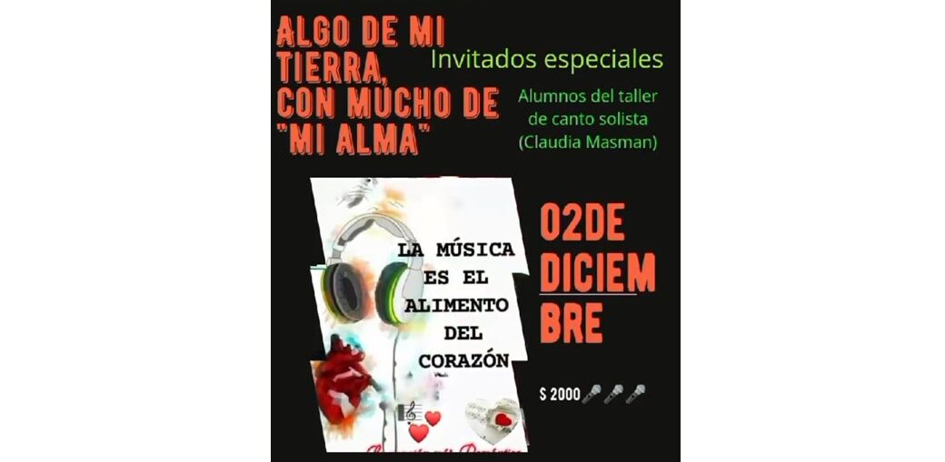«Algo de mi tierra, con mucho de mi alma» se presenta el 2 de diciembre Archivo - Archive Noticias - News Número 19 - Noviembre de 2023 17 de noviembre de 2023 Contacto con la profesional a cargo: 2613630027 Mendoza - Argentina