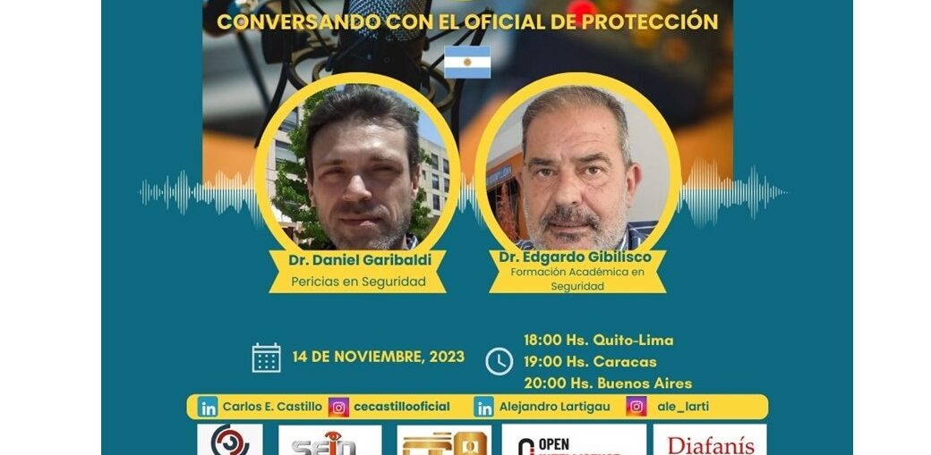 Comienza el programa «Conversando con el oficial de protección» edición argentina Archivo - Archive Noticias - News Número 19 - Noviembre de 2023 12 de noviembre de 2023 El martes 14 de noviembre a partir de las 20 hs. de Buenos Aires (Argentina), comienza el programa «Conversando con el oficial de protección» edición argentina, que estará a cargo de Alejandro Lartigau y Carlos Castillo. En el mismo se contará con la presencia de relevantes académicos del ámbito de la