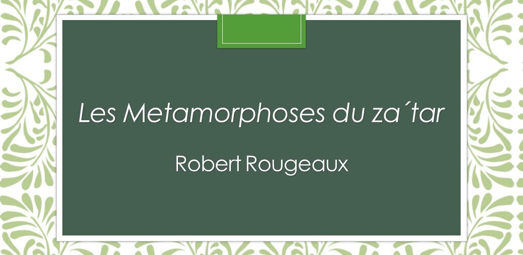 Les Metamorphoses du za´tar – Robert Rougeaux Archivo - Archive Ciencias y Comunicación - Science and Communication Número 19 - Noviembre de 2023 11 de noviembre de 202311 de noviembre de 2023 Robert Rougeaux - Traduction-interprétariat France rougeaux1983@yahoo.fr Le mot ou saʿtar, qui signifie thym en arabe, est un mot quadrilitère, c’est-à-dire que sa base est composée de quatre consonnes radicales. Il ne peut pas être réduit à une racine plus petite, trilitère. On utilise aussi la forme ṣaʿtar et, de nos jours, zaʿtar. En