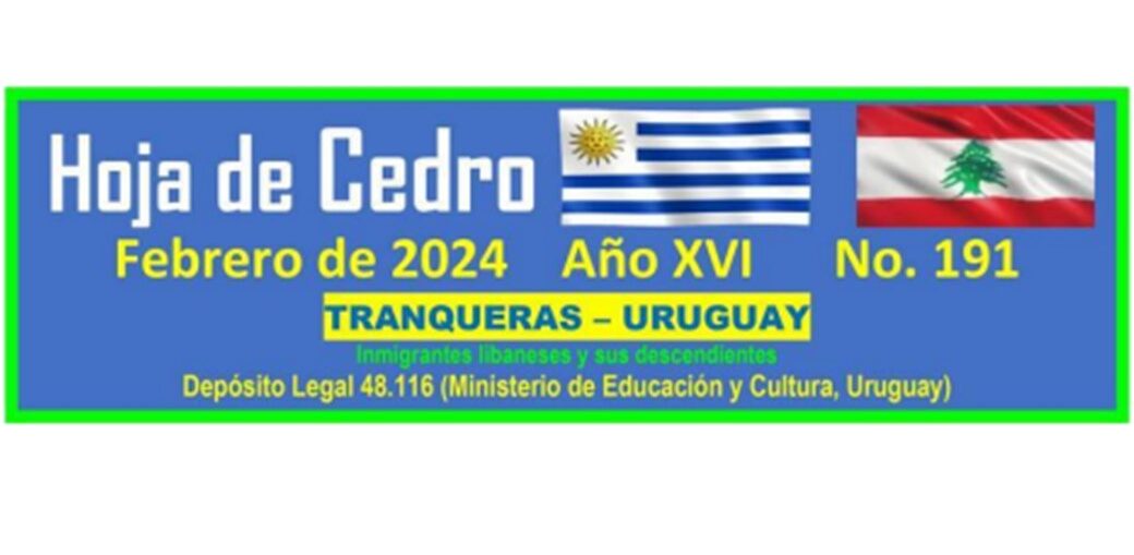«Hoja de Cedro» de febrero disponible para descargar de forma libre en Diafanís Archivo - Archive Febrero 2024 Noticias - News 4 de febrero de 2024 HOJA DE CEDRO. Febrero 2024 Hoja de Cedro, la conocida publicación artesanal sobre el Líbano, inmigrantes libaneses y descendientes, que publica desde Tranqueras, Uruguay, su creador y productor José María Almada Sad, publicó su ejemplar del mes de febrero de 2024, Año XVI, N° 191; que puede descargarse de forma libre