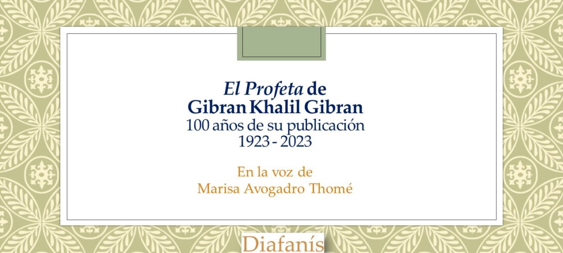 «El Profeta» de Khalil Gibran en la voz de Marisa Avogadro Thomé a 100 años de publicado Agosto 2023 Archivo - Archive Ciencias y Comunicación - Science and Communication 22 de agosto de 2023 Mag. Marisa Avogadro Thomé – Escritora argentina Socia correspondiente por la Argentina en la Academia Libanesa – Brasileña de Letras, Artes y Ciencias en Rio de Janeiro, Brasil me.avogadro@gmail.com.ar El libro El Profeta de Gibran Khalil Gibran fue publicado en el año 1923 en los Estados Unidos y este año 2023, se recuerda el