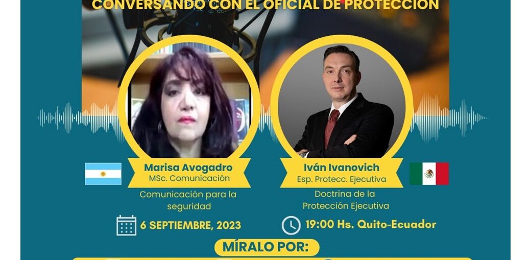 Programa «Conversando con el oficial de protección»: Doctrina de protección ejecutiva y Comunicación para la Seguridad el 6 de setiembre Archivo - Archive Noticias - News Setiembre 2023 3 de septiembre de 2023 Trasmisión a las 19 hs de Ecuador - 21 hs de Argentina - 18 hs de México