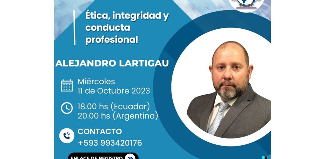 IFPO Webinar: «Ética, integridad y conducta profesional» a cargo de Alejandro Lartigau Archivo - Archive Noticias - News Setiembre 2023 5 de septiembre de 202326 de septiembre de 2023 La Fundación Internacional de Oficiales de Protección - IFPO - organiza el webinar "Ética, integridad y conducta profesional", que estará a cargo de Alejandro Lartigau, el 11 de octubre desde las 18hs de Ecuador y 20hs de la Argentina. El mismo está destinado a miembros de la comunidad IFPO. El expositor,