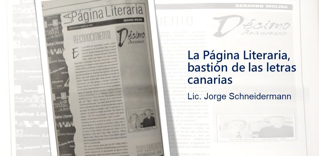 «La Página Literaria», bastión de las letras canarias por el Lic. Jorge Schneidermann Archivo - Archive Ciencias y Comunicación - Science and Communication Setiembre 2023 6 de septiembre de 2023 Lic. Jorge Schneidermann Psicólogo clínico, ensayista, docente y comunicador de Uruguay jorgeschneidermann@gmail.com "La Página Literaria", bastión de las letras canarias 32 años celebrando la cultura “Hay quienes no pueden imaginar un mundo sin pájaros; hay quienes no pueden imaginar un mundo sin agua; en lo que a mí se refiere, soy incapaz de imaginar