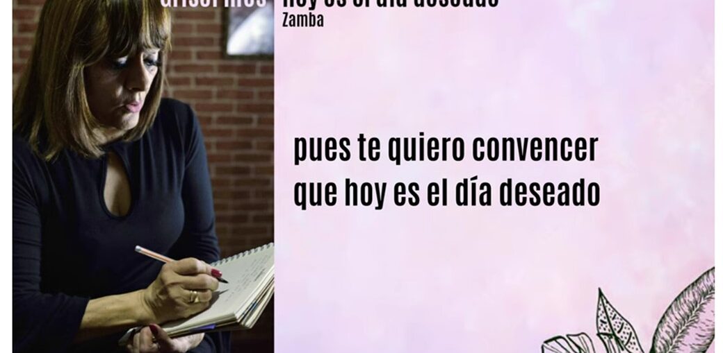Hoy es el día deseado – Zamba por Grisel Ríos Archivo - Archive Arte -Art Música Número 19 - Noviembre de 2023 3 de noviembre de 20233 de noviembre de 2023 https://youtu.be/C7MbvZGL86w?si=JDyW2JKyhtVvxKRy Hoy es el día deseado Zamba: autora e intérprete Grisel Ríos, artista de Mendoza, Argentina Arreglos musicales y guitarra: Raúl Omar Verón