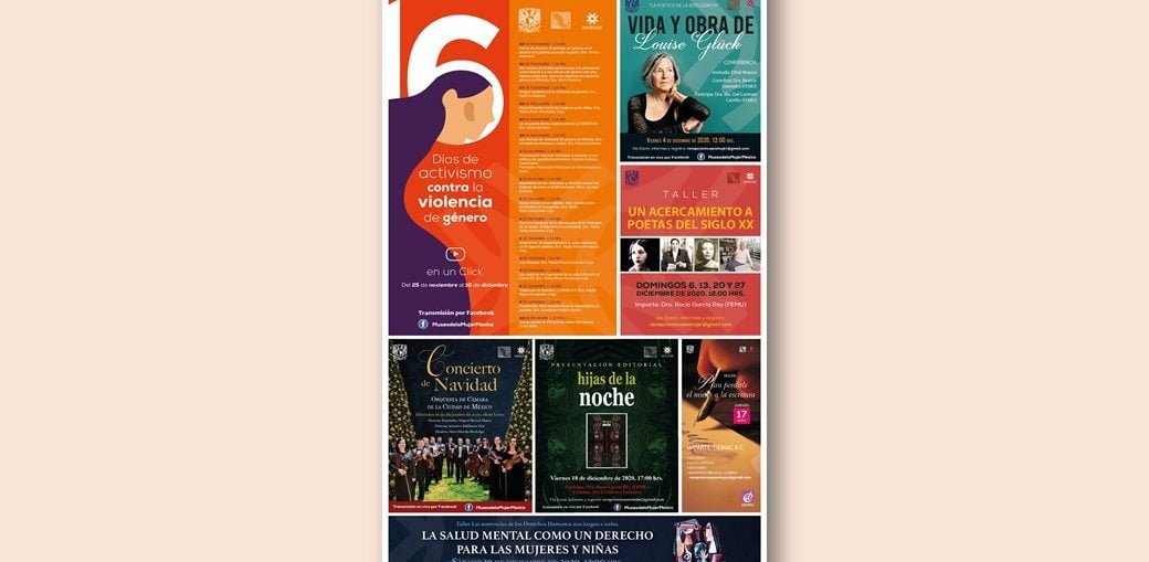Actividades de diciembre en el Museo de la Mujer de México Archivo - Archive Diciembre 2020 Noticias - News 1 de diciembre de 20201 de diciembre de 2020 Conoce la cartelera de actividades virtuales en el Museo de la Mujer de México durante el mes de diciembre ️en: https://museodelamujer.org.mx/virtual/actividades/ Para mayores informes o registro a cualquier actividad, se debe escribir un correo a recepcionmuseomujer@gmail.com