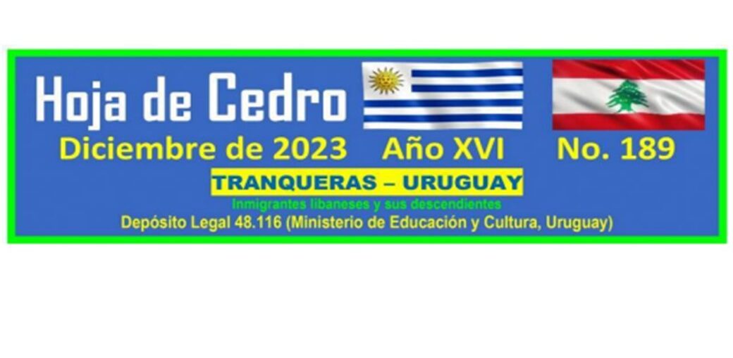 «Hoja de Cedro» de diciembre disponible para descargar de forma libre en Diafanís Archivo - Archive Diciembre 2023 Noticias - News 1 de diciembre de 20231 de diciembre de 2023 HOJA DE CEDRO.Diciembre.2023 Hoja de Cedro, la conocida publicación artesanal sobre el Líbano, inmigrantes libaneses y descendientes, que publica desde Tranqueras, Uruguay, su creador y productor José María Almada Sad, publicó su ejemplar del mes de diciembre de 2023, Año XVI, N° 189; que puede descargarse de forma libre desde nuestra