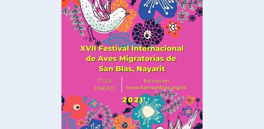 XVII Festival Internacional de Aves Migratorias de San Blas, Nayarit se inaugura el 17 de enero Archivo - Archive Enero 2021 Noticias - News 16 de enero de 2021 El XVII Festival Internacional de Aves Migratorias de San Blas, Nayarit comienza el 17 de enero, este año en edición en casa, en línea, de forma gratis. El Programa de Inauguración es el siguiente: - Palabras de Bienvenida -Exposición de Motivos - Arte para Todos: Inauguración de la Exposición "El Arte, la pandemia y