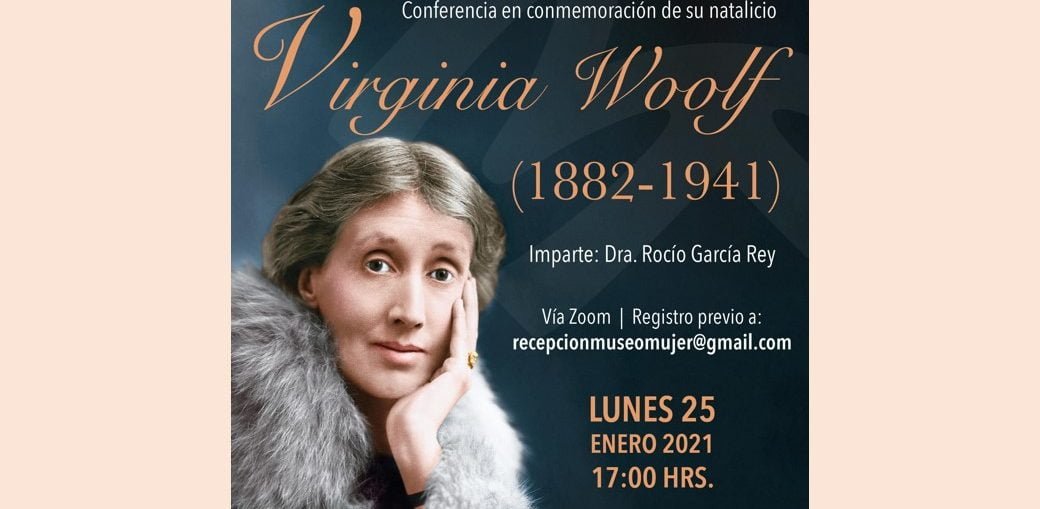 Virginia Wolf: Conferencia virtual – Museo de la Mujer- México Archivo - Archive Enero 2021 Noticias - News 23 de enero de 202123 de enero de 2021 El Museo de la Mujer invita a la conferencia virtual Virginia Woolf (1882-1941), en conmemoración de su natalicio, que impartirá la Dra. Rocío García Rey (FEMU). La cita es el lunes 25 de enero a las 17 horas. Para interactuar vía Zoom, es necesario registrarse previamente al correo electrónico recepcionmuseomujer@gmail.com ,