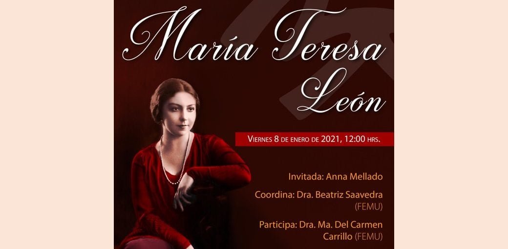 Poética de la inteligencia: María Teresa León – Museo de la Mujer de México Archivo - Archive Enero 2021 Noticias - News 4 de enero de 2021 El Museo de la Mujer invita a la sesión de Poética de la inteligencia para hablar sobre la vida y obra de la escritora española María Teresa León (1903-1988). Es una actividad coordinada por la Dra. Beatriz Saavedra (FEMU); invitada: Anna Mellado; participa también la Dra. Ma. del Carmen Carrillo