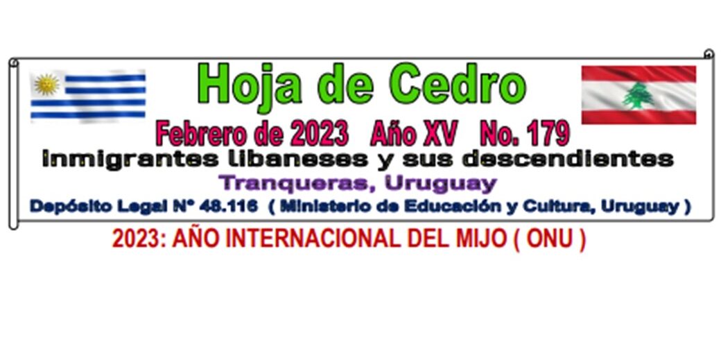 «Hoja de Cedro» de febrero disponible en Diafanís para descargar de forma libre Archivo - Archive Febrero 2023 Noticias - News 31 de enero de 202331 de enero de 2023 HOJA DE CEDRO. FEBRERO 2023 Hoja de Cedro, la conocida publicación artesanal sobre el Líbano, inmigrantes libaneses y descendientes, que publica desde Tranqueras, Uruguay, su creador y productor José María Almada Sad, publicó su ejemplar del mes de febrero de 2023, Año XV, N° 179; que puede descargarse de forma libre